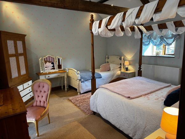 King-size four-poster bed + single bed (sleeps up to 3)